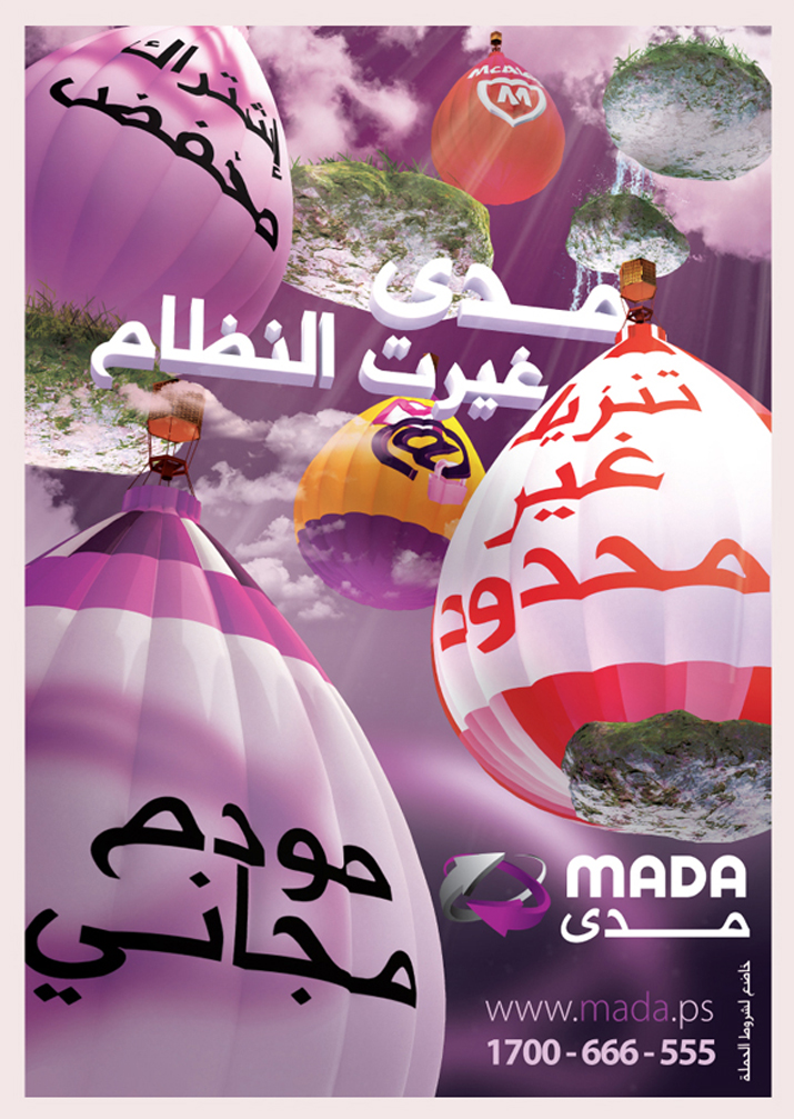 In the evening of the Egyptian revolution, Mada campaign was born to be reflected as everything in our lives by the upraise in the Arab worlds, and there was the idea created “مدى غيرت النظام”. “Mada changed the system” or “Mada changed the regime” as the campaign is against the regular internet providers in Palestine by its special offer. The idea was combined between being against the forces of nature and the reflection of the current situation.